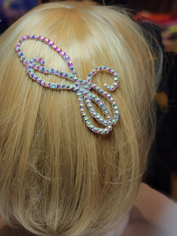 Put some extra bling in your dance with our Hair Jewelry.  We create each one using a special “hair velcro” that holds it in place while also making it easy to remove or reposition.
