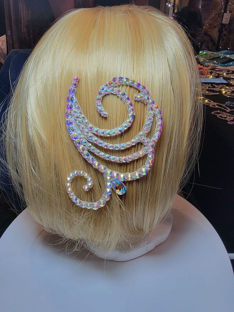 Put some extra bling in your dance with our Hair Jewelry.  We create each one using a special “hair velcro” that holds it in place while also making it easy to remove or reposition.