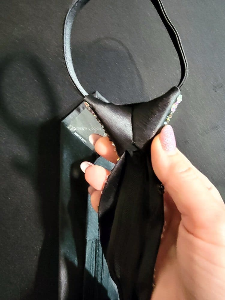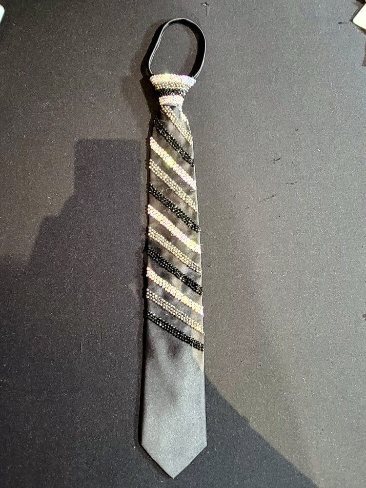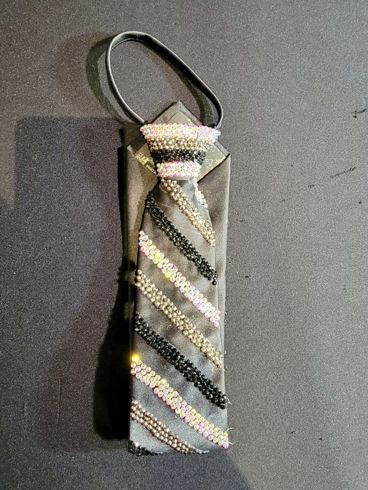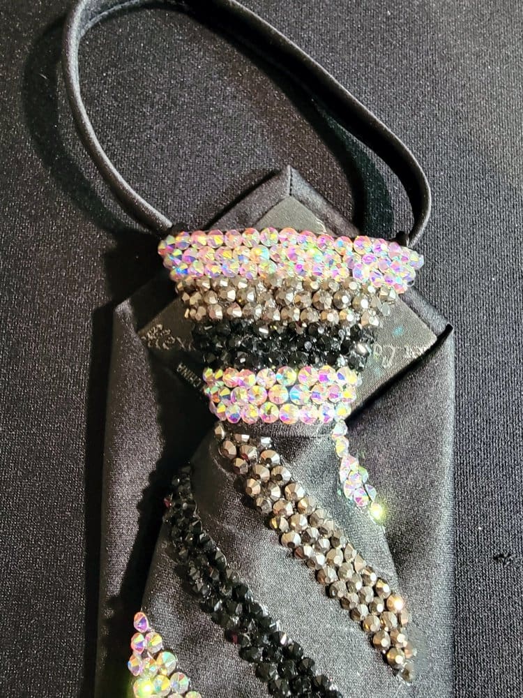 Our ties are designed so you can match the color of your dress with the tie. Ladies, these make a perfect Xmas gift for your dance partner. Our ties have an easy zip knot that makes putting it on and getting it in position super easy. Just slide the know up and down as if it were on a zipper. Need a custom designed tie? We can do it with enough advance notice. Contact us for more information on this option.