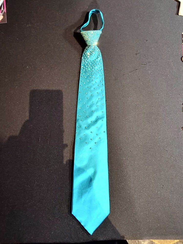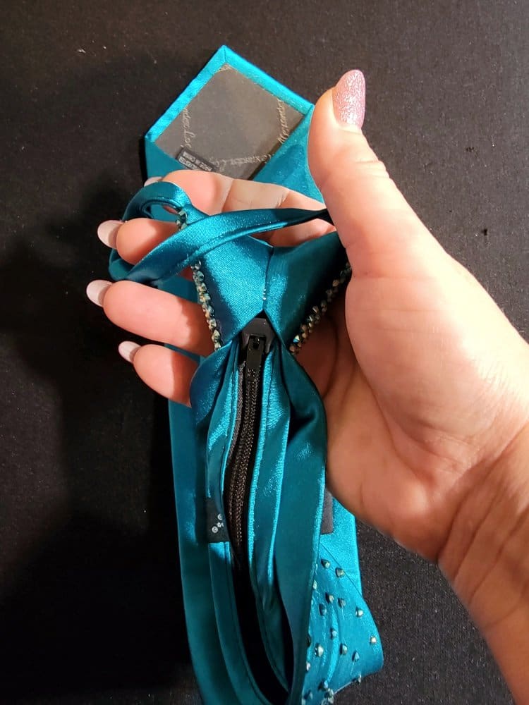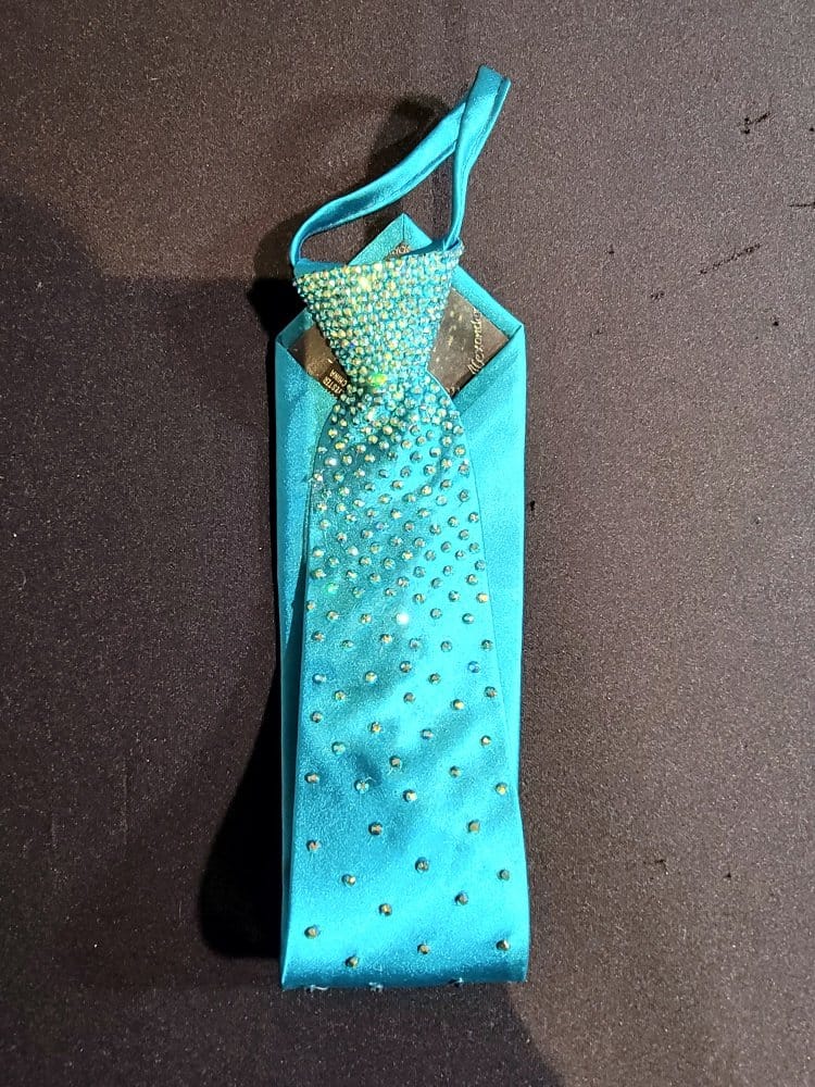 Our ties are designed so you can match the color of your dress with the tie. Ladies, these make a perfect Xmas gift for your dance partner. Our ties have an easy zip knot that makes putting it on and getting it in position super easy. Just slide the know up and down as if it were on a zipper. Need a custom designed tie? We can do it with enough advance notice. Contact us for more information on this option.