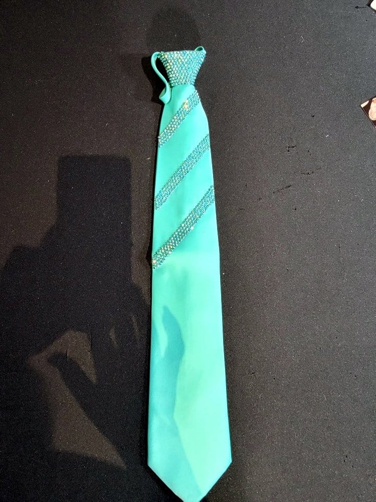 Our ties are designed so you can match the color of your dress with the tie. Ladies, these make a perfect Xmas gift for your dance partner. Our ties have an easy zip knot that makes putting it on and getting it in position super easy. Just slide the know up and down as if it were on a zipper. Need a custom designed tie? We can do it with enough advance notice. Contact us for more information on this option.