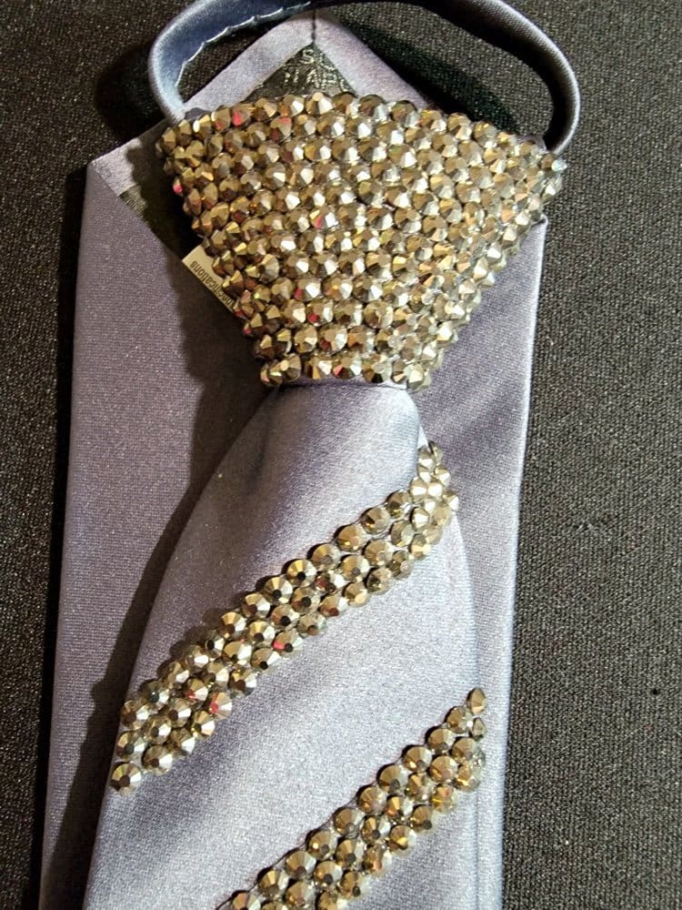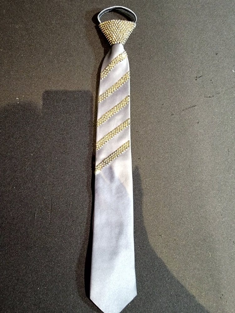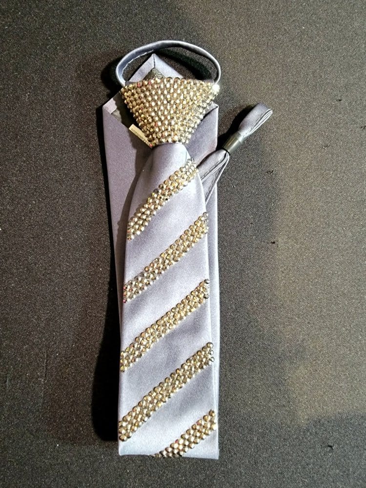 Our ties are designed so you can match the color of your dress with the tie. Ladies, these make a perfect Xmas gift for your dance partner. Our ties have an easy zip knot that makes putting it on and getting it in position super easy. Just slide the know up and down as if it were on a zipper. Need a custom designed tie? We can do it with enough advance notice. Contact us for more information on this option.
