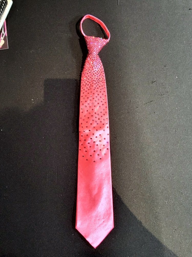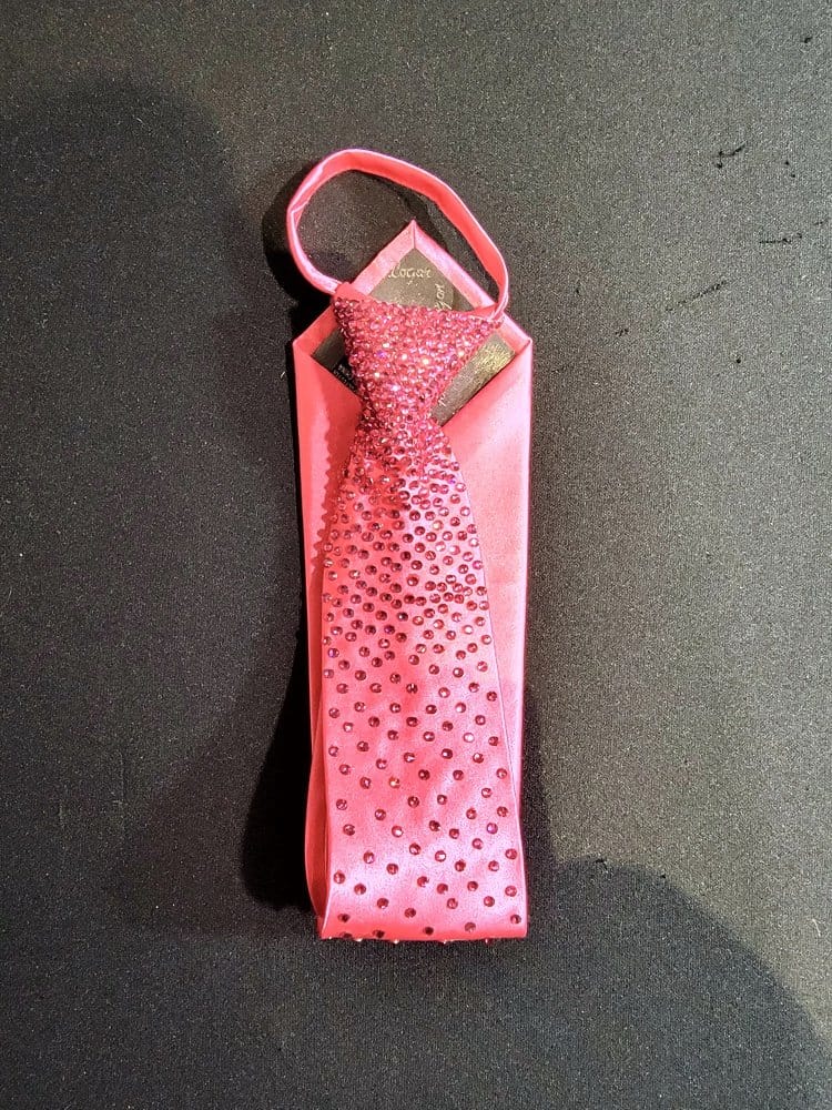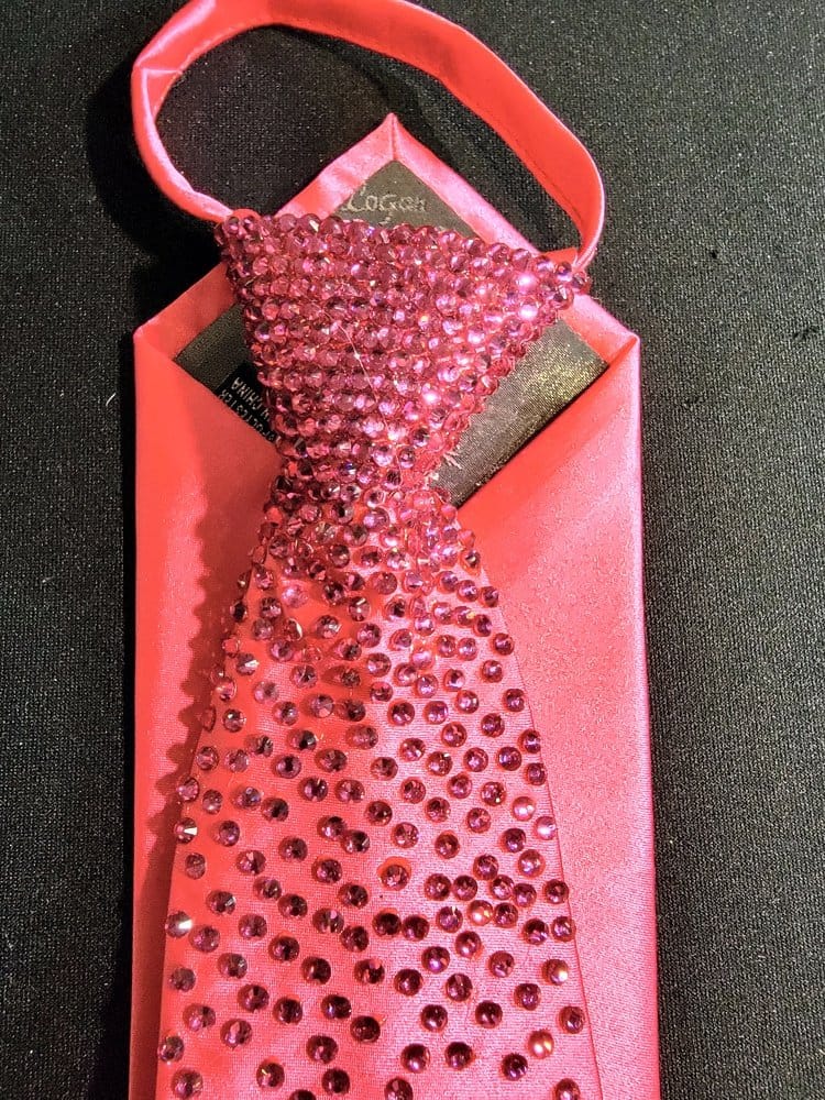 Our ties are designed so you can match the color of your dress with the tie. Ladies, these make a perfect Xmas gift for your dance partner. Our ties have an easy zip knot that makes putting it on and getting it in position super easy. Just slide the know up and down as if it were on a zipper. Need a custom designed tie? We can do it with enough advance notice. Contact us for more information on this option.