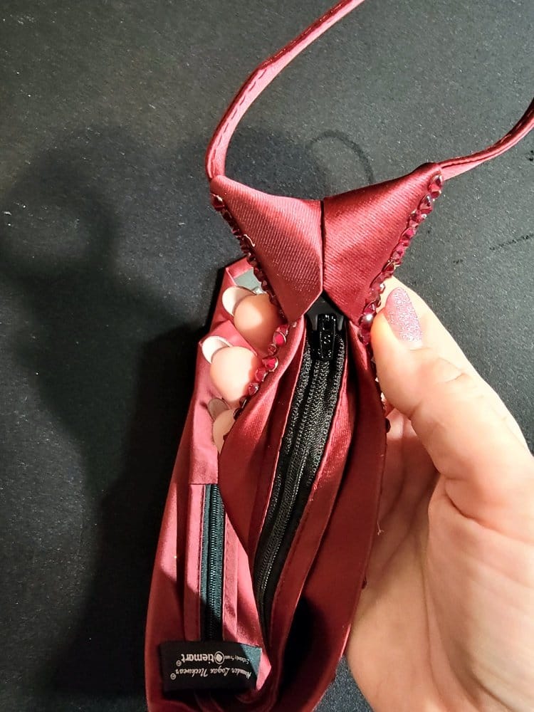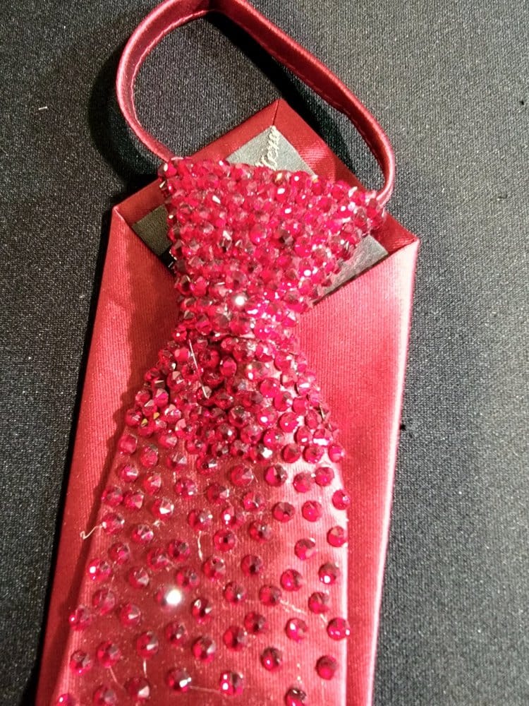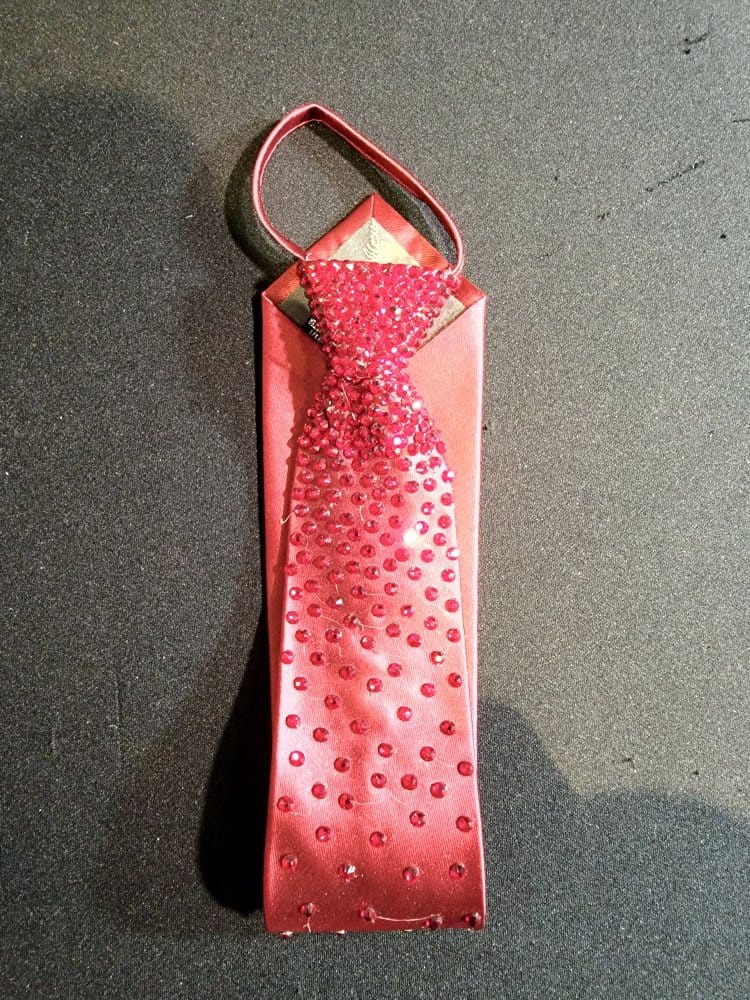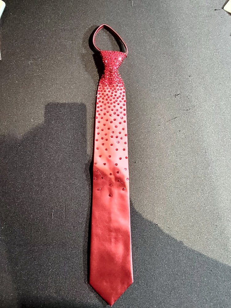 Our ties are designed so you can match the color of your dress with the tie. Ladies, these make a perfect Xmas gift for your dance partner. Our ties have an easy zip knot that makes putting it on and getting it in position super easy. Just slide the know up and down as if it were on a zipper. Need a custom designed tie? We can do it with enough advance notice. Contact us for more information on this option.