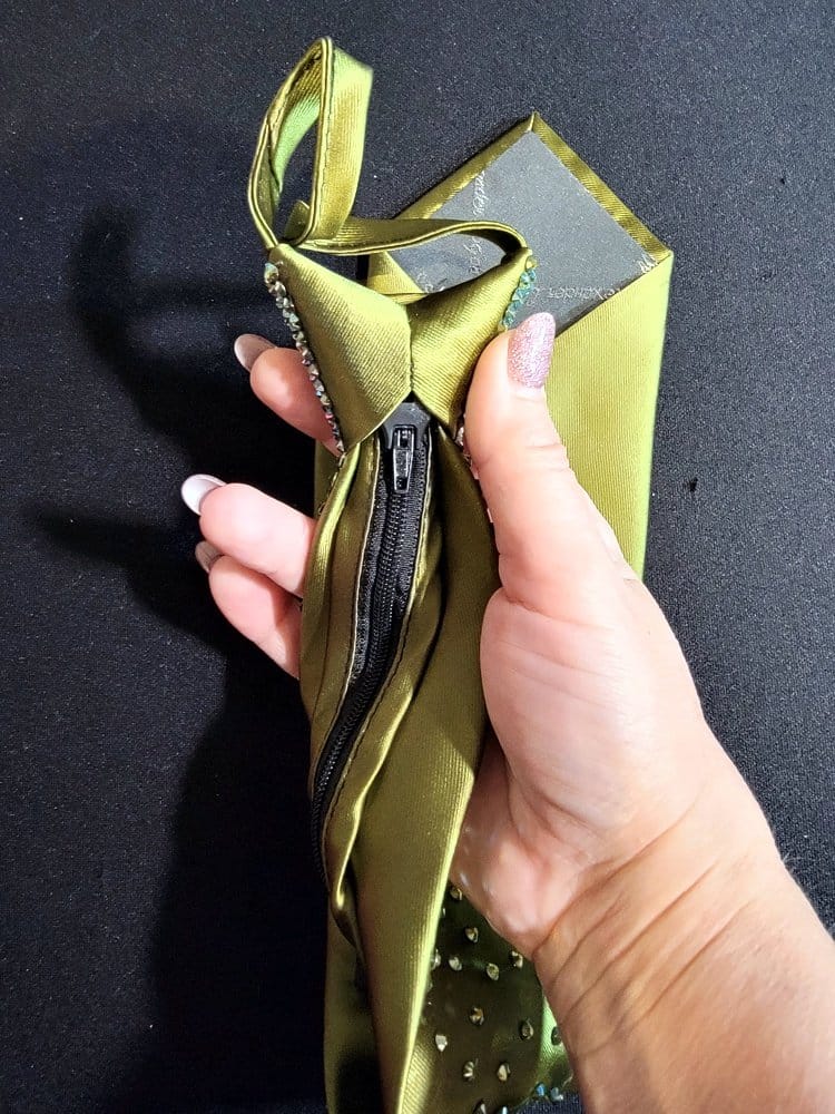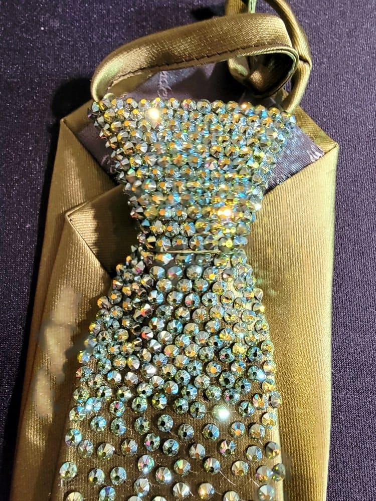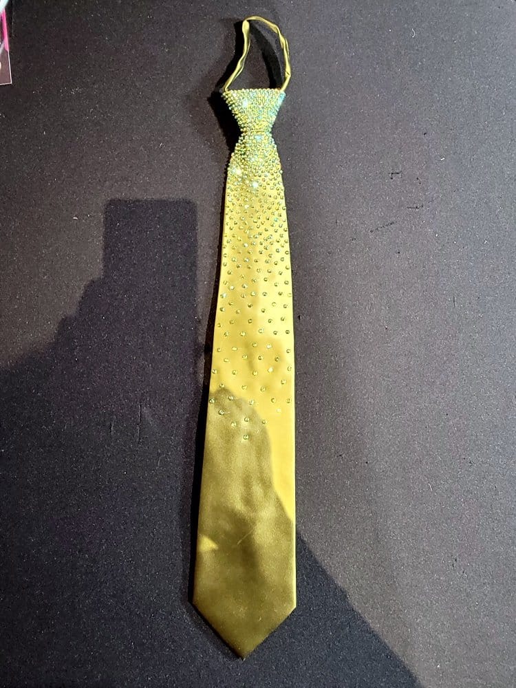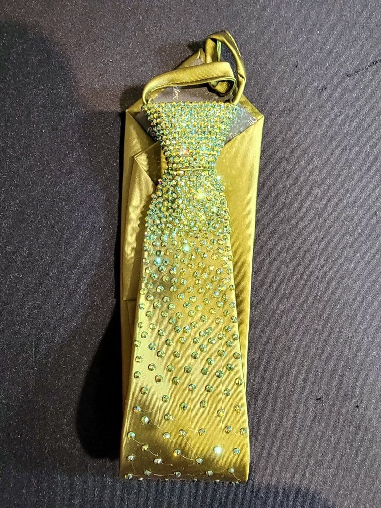 Our ties are designed so you can match the color of your dress with the tie. Ladies, these make a perfect Xmas gift for your dance partner. Our ties have an easy zip knot that makes putting it on and getting it in position super easy. Just slide the know up and down as if it were on a zipper. Need a custom designed tie? We can do it with enough advance notice. Contact us for more information on this option.